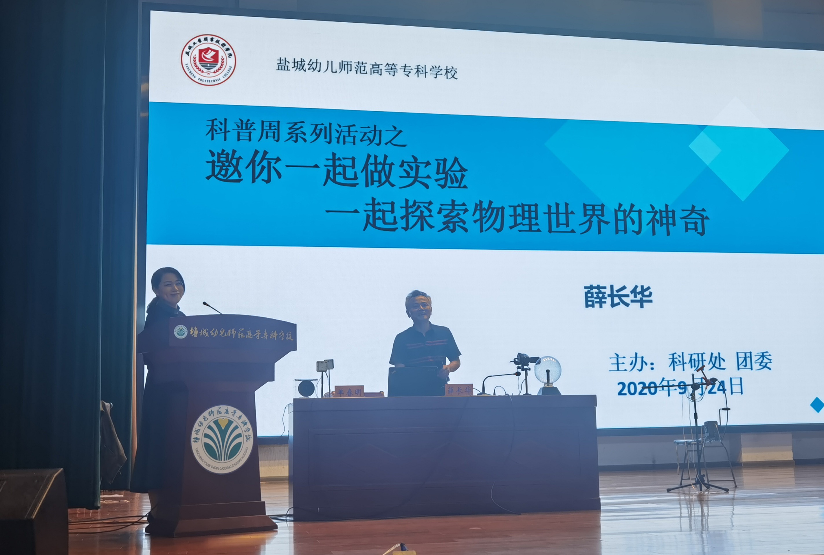 9月24日下午,我校在南校区图文信息楼三楼报告厅为师生开展科普成果展示活动。科研处邀请我校科普达人薛长华老师开设题为《邀你一起做实验 ,一起探索物理世界的神奇》展示活动。王雪晴、史元军、孙铁军、杭颖等师生近200人现场观摩。活动由科研处单春明副处长主持。