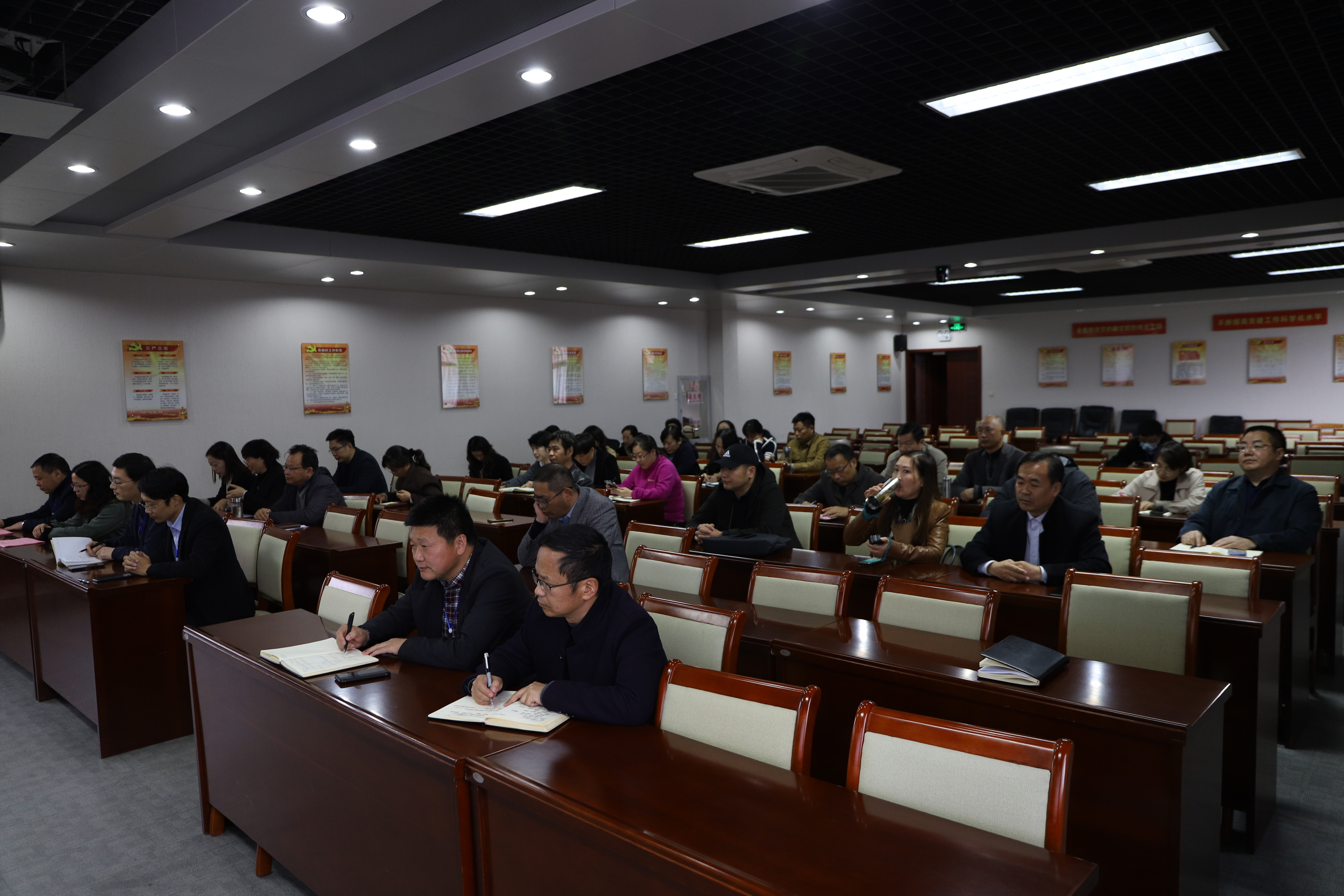 11月5日下午,我校在学海路校区图文信息楼五楼大会议室举行“臻美讲堂”宣讲活动启动仪式,学校党委书记刘毓航、校长姜统华、纪委书记马力、副校长戴永湖出席仪式。各学院、部门主要负责人、各学院分管科研工作的副院长、教授和博士代表以及工会代表参加启动仪式。仪式由姜统华校长主持,刘毓航书记在启动仪式上发表了题为《美德相携,同向同行,培根铸魂——切实搞好“臻美讲堂”宣讲活动》的主旨讲话。