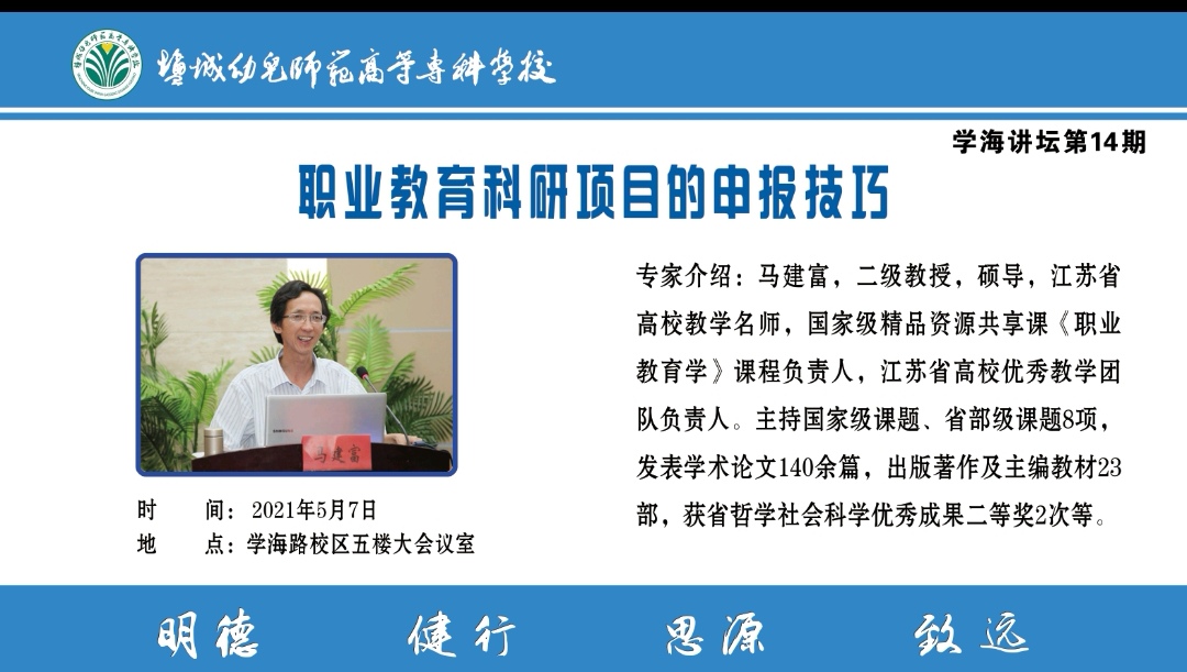 马教授讲座的主题为“职业教育研究课题的选择与申报”。他从分析各个不同科研项目的特征入手,以本人的项目和辅导的科研项目为例,深入浅出地向与会教师介绍课题成功申报的关键要素。然后他以本人的申报书为例,从科研项目的预研、选题、综述、重难点的突破等方面逐一进行了详细的讲解。他的讲座内容详实,可操作性强。老师们听了豁然开朗,意犹未尽。