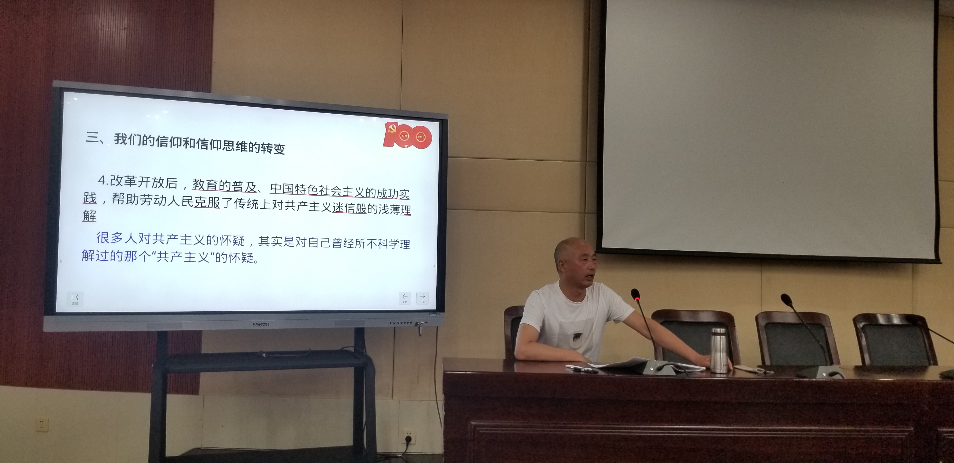 对于“为什么要信仰共产主义”这一问题,周院长从四个方面做了详细的介绍。首先,我们的信仰是崇高的信仰;其次,我们的信仰是红色的信仰;再次,我们的信仰是科学的信仰;最后,我们的信仰是人民的信仰。他强调,生活不能没有信仰,追求美好生活、向往美好未来,是我们中华民族的传统。我们的信仰是崇高的、红色的、科学的、人民的信仰,这是我们的必然选择,也必将是全人类的最终选择。
