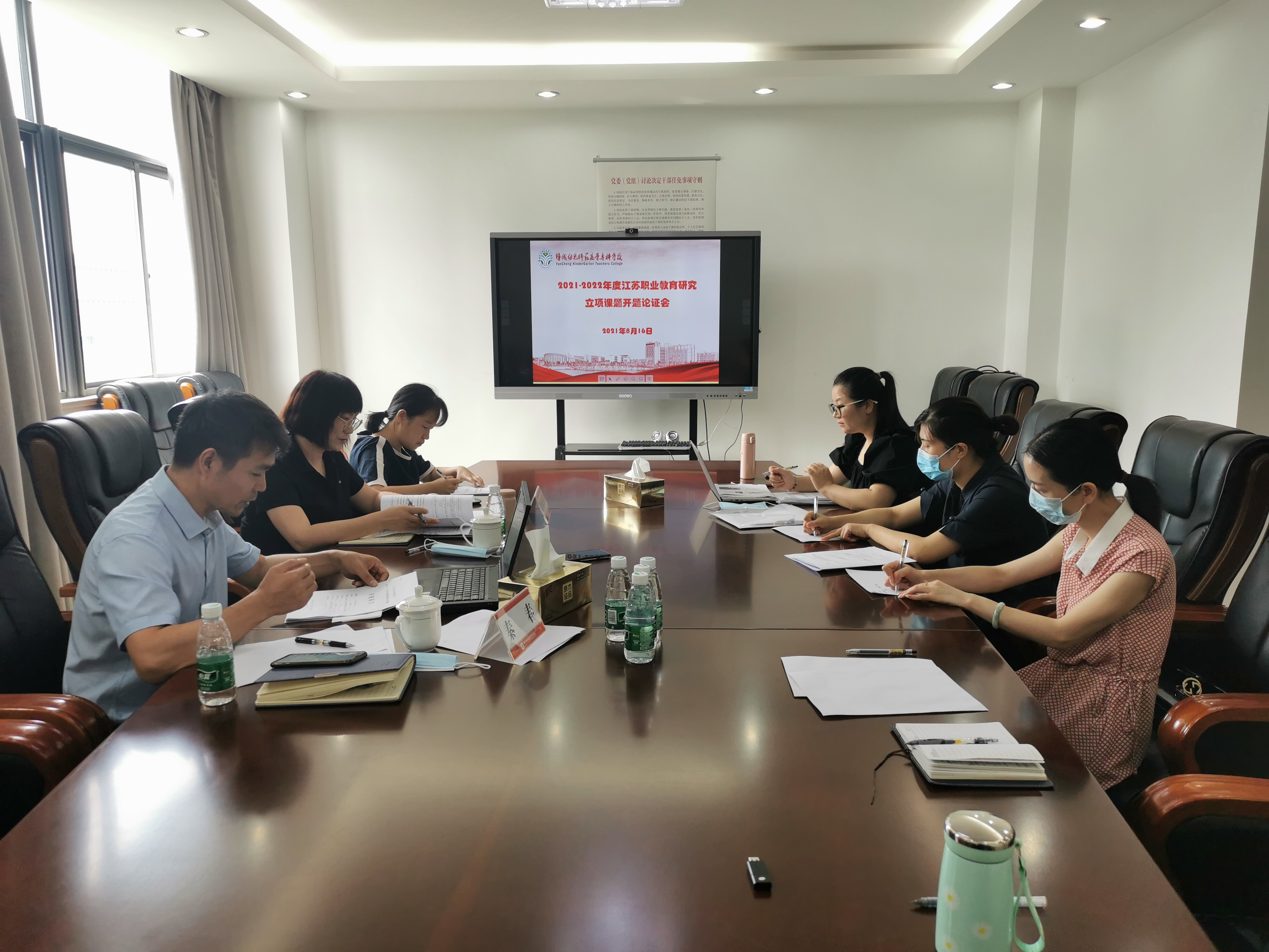 8月16日上午,我校在学海路图文信息中心五楼小会议室组织召开了2021-2022年度江苏职业教育研究立项课题开题论证会。会议采取腾讯会议与现场论证会相结合的方式进行。江苏理工学院职业教育学部副主任、教授臧志军,江苏理工学院职业教育学部袁丽英研究员以及我校秦春教授参加了本次论证会,由臧教授担任专家组组长。会议由我校科研处处长周梅香主持。