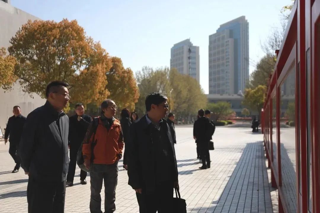 揭牌仪式前,在校长姜统华、副校长戴永湖等陪同下,参会领导、专家先后参观了铁军艺苑、鲁艺广场、实训中心。