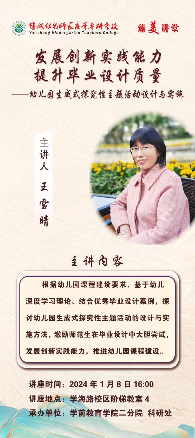 臻美讲堂第60讲:王雪晴:《发展创新实践能力,提升毕业设计质量》