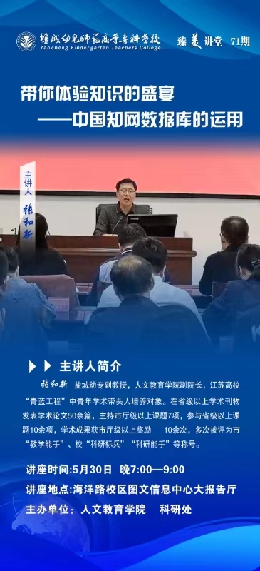 臻美讲堂第70讲:张和新《带你体验知识的盛宴——中国知网数据库的运用》