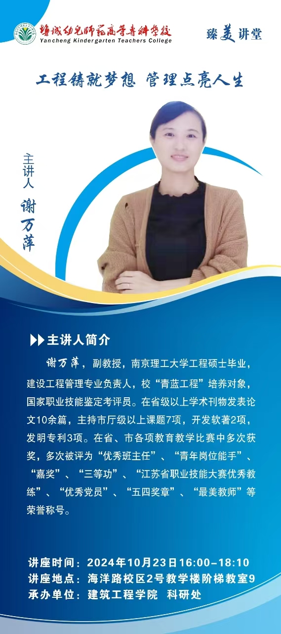 臻美讲堂第79讲:谢万萍《工程铸就梦想 管理点亮人生》