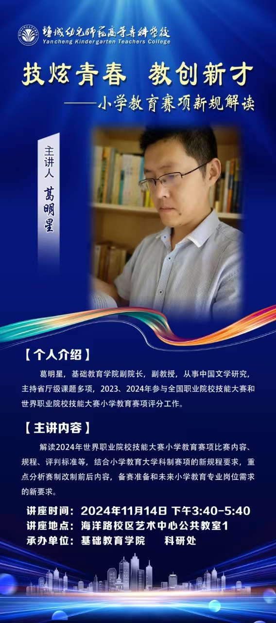 臻美讲堂第84讲:葛明星《技炫青春 教创新才——小学教育赛项新规解读》