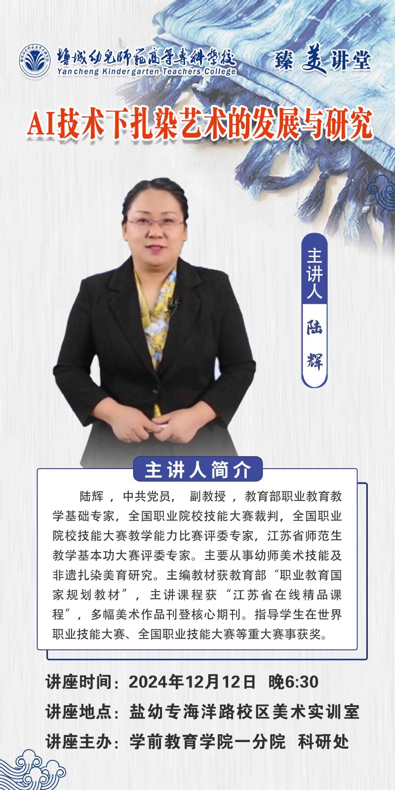 臻美讲堂第115讲:陆辉《AI技术下扎染艺术的发展与研究》