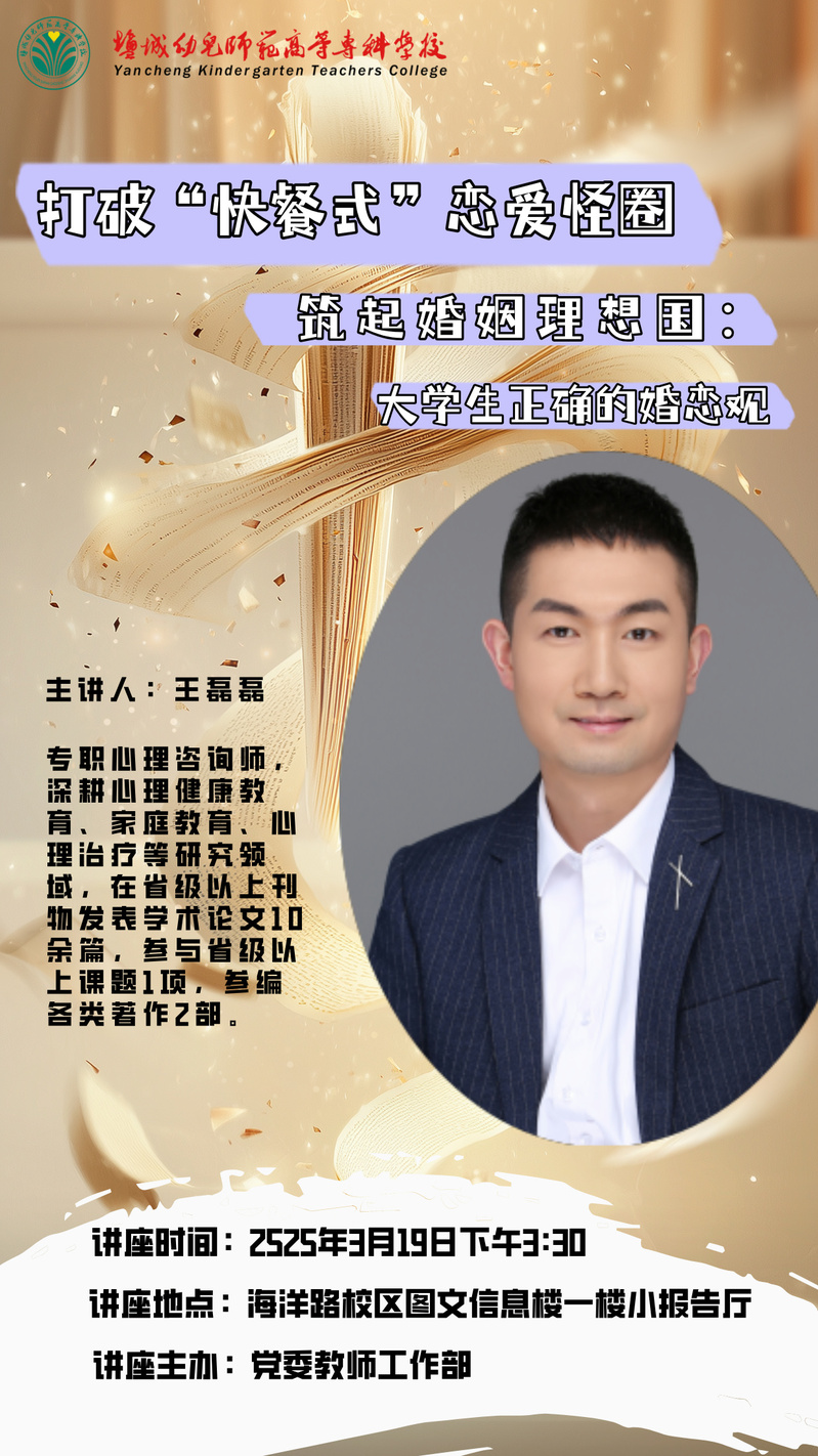 臻美讲堂第128讲:王磊磊《打破“快餐式”恋爱怪圈,筑起婚姻理想国:大学生正确的婚恋观》