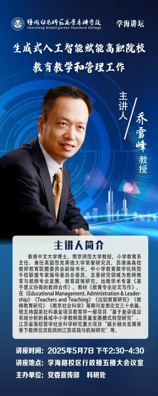 学海讲坛第28期:乔雪峰《生成式人工智能赋能高职院校教育教学和管理工作》