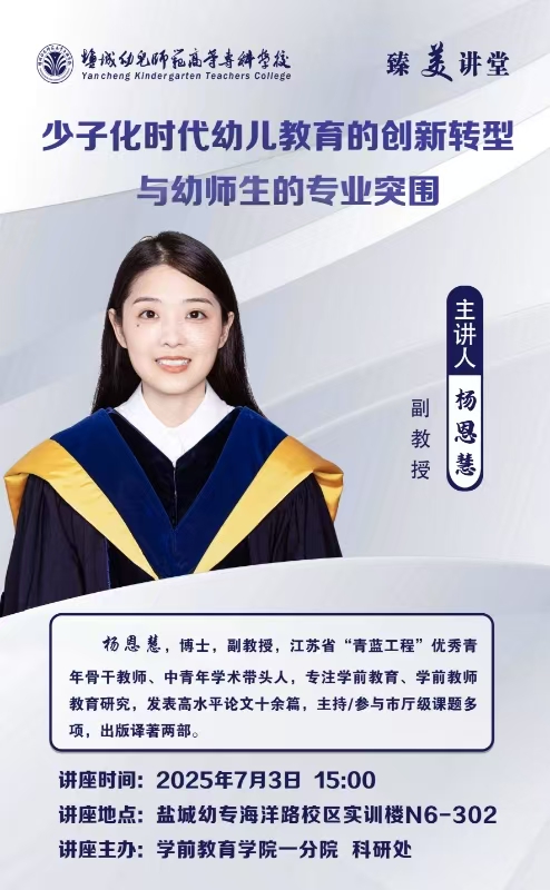 臻美讲堂第175讲:杨恩惠《少子化时代幼儿教育的创新转型与幼师生的专业突围》