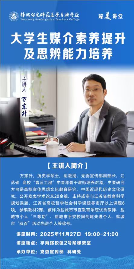 臻美讲堂第224讲:万东升《大学生媒介素养提升及思辨能力培养》